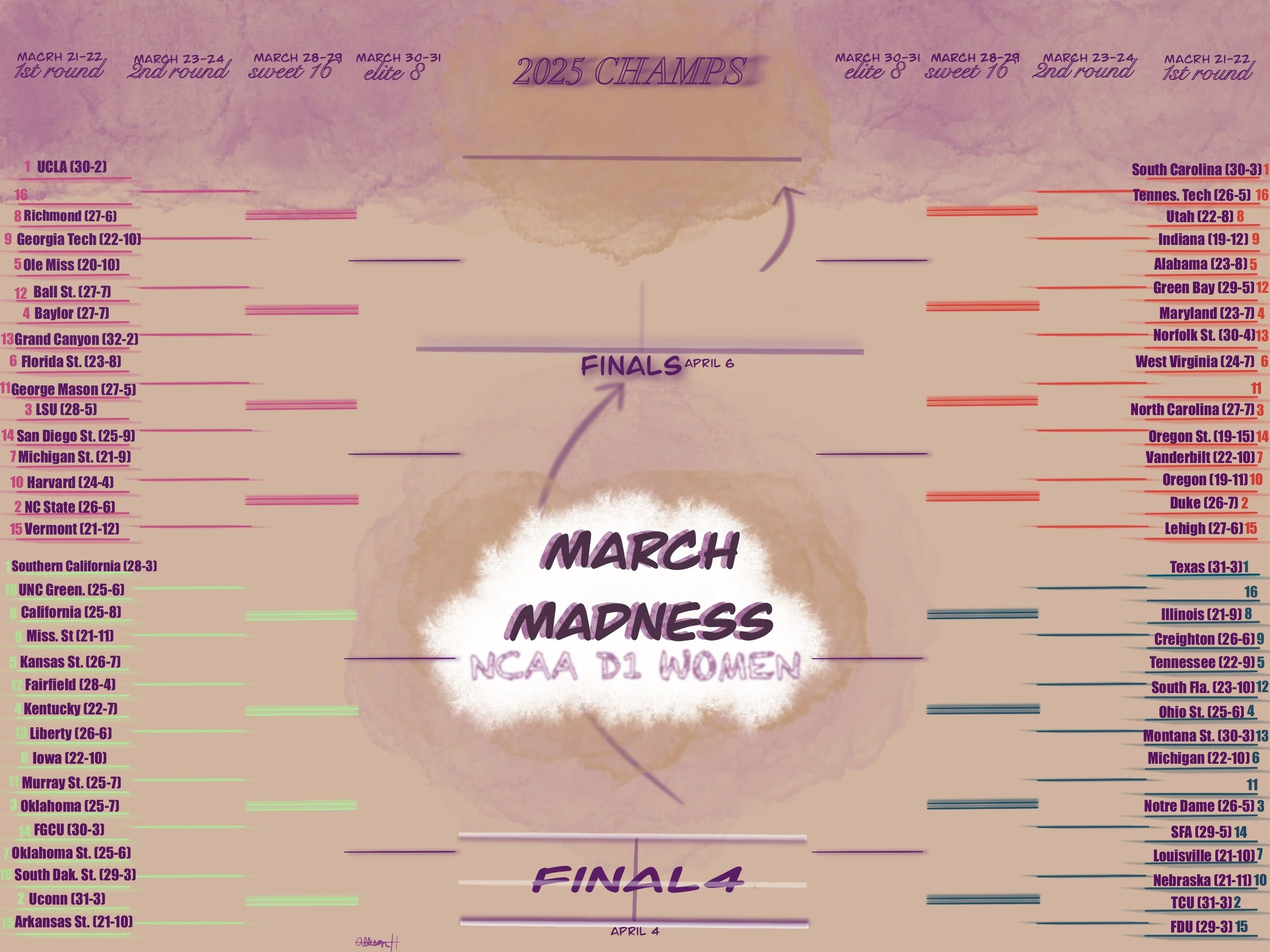 NCAAW D1 MARCH MADNESS 2025 SICK BRACKET